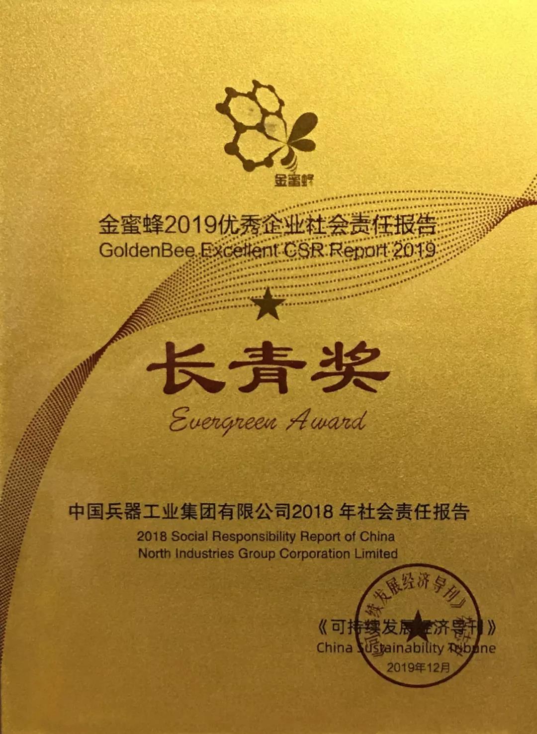 兵器工業(yè)集團社會責(zé)任報告再獲“金蜜蜂優(yōu)秀企業(yè)社會責(zé)任報告·長青獎” |