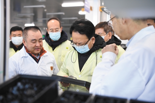 12月9日,吉林省委書記景俊海到中國兵器工業(yè)集團東北工業(yè)集團有限公司,就深入貫徹黨的十九屆五中全會精神和習近平總書記視察吉林重要講話重要指示精神,全面落實省委十一屆八次全會精神,推動企業(yè)創(chuàng)新發(fā)展等情況進行調研。吉林省委常委、副省長吳靖平,吉林省委常委、省委秘書長胡家福,吉林省委常委、長春市委書記王凱一同調研。  圖為景俊海等在東北工業(yè)集團生產現場調研