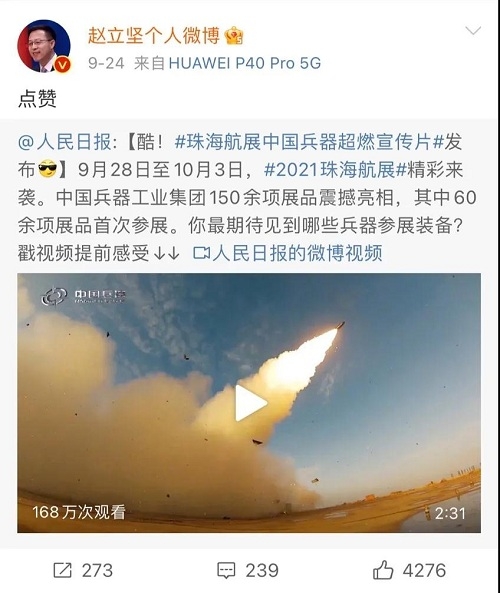 人民日報、新華社、中國日報、共青團中央、國資小新、騰訊軍事、鳳凰軍事、新浪軍事等新媒體發(fā)布的集團公司航展宣傳片等視頻作品燃爆全網(wǎng),閱讀量突破三千萬人次,得到外交部發(fā)言人趙立堅轉(zhuǎn)載點贊。集團公司微信、微博、抖音號、微信視頻號等新媒體宣傳片播放閱讀量超過400萬人次。同時,央視新聞、新華社、中國之聲、央視軍事、央視新媒體、解放軍報、共青團中央、國資小新、環(huán)球時報等多家媒體對集團公司靜、動態(tài)展區(qū)進行現(xiàn)場直播,在電視端、客戶端、微信視頻號、微博、B站、快手、抖音等平臺受到高度關(guān)注。著名軍事專家杜文龍、央視主持人顧國寧、央廣中國之聲主持人王藝等直播兵器館、動態(tài)表演區(qū)裝備。 《參考消息》、新華網(wǎng)、央廣網(wǎng)、中國日報、科技日報、解放軍報、人民網(wǎng)、中國新聞網(wǎng)、中國青年網(wǎng)、中國網(wǎng)、中工網(wǎng)、央視網(wǎng)、環(huán)球網(wǎng)、騰訊網(wǎng)、新浪網(wǎng)、鳳凰網(wǎng)、搜狐網(wǎng)、網(wǎng)易網(wǎng)、今日頭條等中央主流媒體和知名網(wǎng)絡(luò)媒體以及南方日報、廣東電視臺、北京電視臺、新京報、珠海傳媒集團、深圳衛(wèi)視等省市媒體對集團公司參展情況進行了圖片、文字、視頻報道。 航展期間,備受關(guān)注的中國兵器館,參觀的觀眾絡(luò)繹不絕。 |