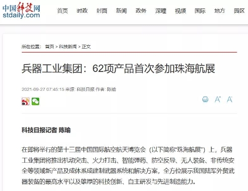 兵器工業(yè)集團參展第十三屆中國航展受到社會廣泛關(guān)注 |