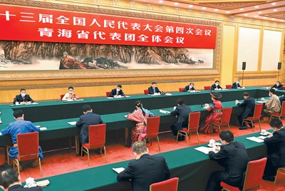 3月7日,中共中央總書(shū)記、國(guó)家主席、中央軍委主席習(xí)近平參加十三屆全國(guó)人大四次會(huì)議青海代表團(tuán)的審議。新華社記者 李濤攝