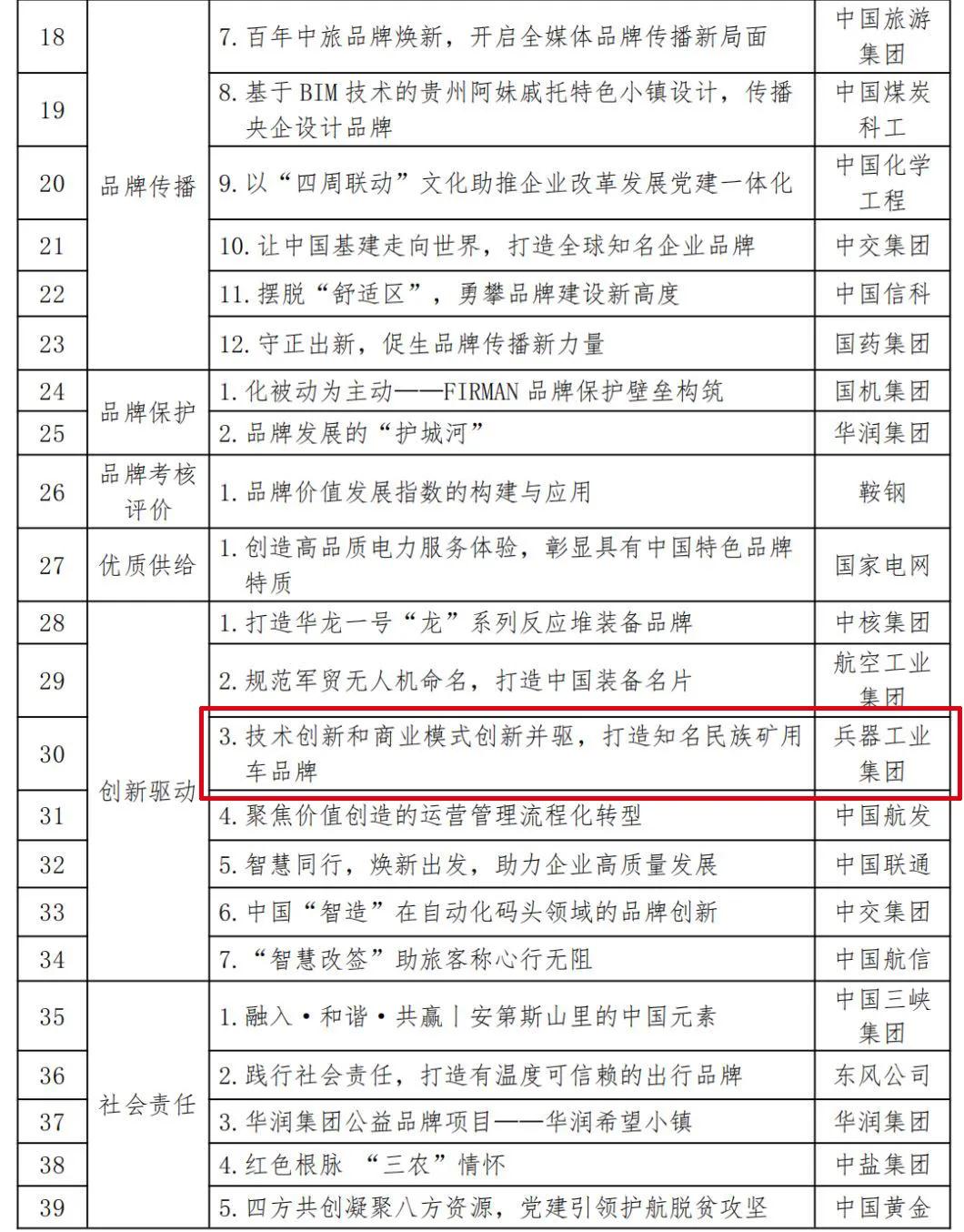 5月10日,由國家發(fā)展改革委等7部門和上海市政府共同主辦,國務(wù)院國資委特別支持的2021年中國品牌日活動(dòng)在上海舉辦。 活動(dòng)現(xiàn)場(chǎng),國資委指導(dǎo)舉辦了中國企業(yè)品牌建設(shè)分論壇,會(huì)上發(fā)布了《2020年度中央企業(yè)品牌建設(shè)發(fā)展報(bào)告》、2020年度100個(gè)國有企業(yè)品牌建設(shè)典型案例和100個(gè)優(yōu)秀品牌故事。中國兵器工業(yè)集團(tuán)北重集團(tuán)的“技術(shù)創(chuàng)新和商業(yè)模式創(chuàng)新并驅(qū),打造知名民族礦用車品牌”入選2020年度100個(gè)國有企業(yè)品牌建設(shè)典型案例,中國兵器工業(yè)集團(tuán)北方公司的微電影《大山里升起的希望》入選2020年度100個(gè)優(yōu)秀品牌故事。 《2020年度中央企業(yè)品牌建設(shè)發(fā)展報(bào)告》分析了當(dāng)前中央企業(yè)加強(qiáng)品牌建設(shè)的形勢(shì)要求,從戰(zhàn)略引領(lǐng)、專業(yè)運(yùn)營、支撐保障、組織管控、全球推廣5個(gè)方面總結(jié)了中央企業(yè)年度品牌建設(shè)進(jìn)展。 2020年度100個(gè)國有企業(yè)品牌建設(shè)典型案例和100個(gè)優(yōu)秀品牌故事,匯集企業(yè)優(yōu)秀經(jīng)驗(yàn)做法,豐富國企品牌資源池,促進(jìn)企業(yè)相互學(xué)習(xí)借鑒,加快提高品牌管理專業(yè)化水平。 2020年度100個(gè)國有企業(yè) 品牌建設(shè)典型案例 來源/國資小新 |