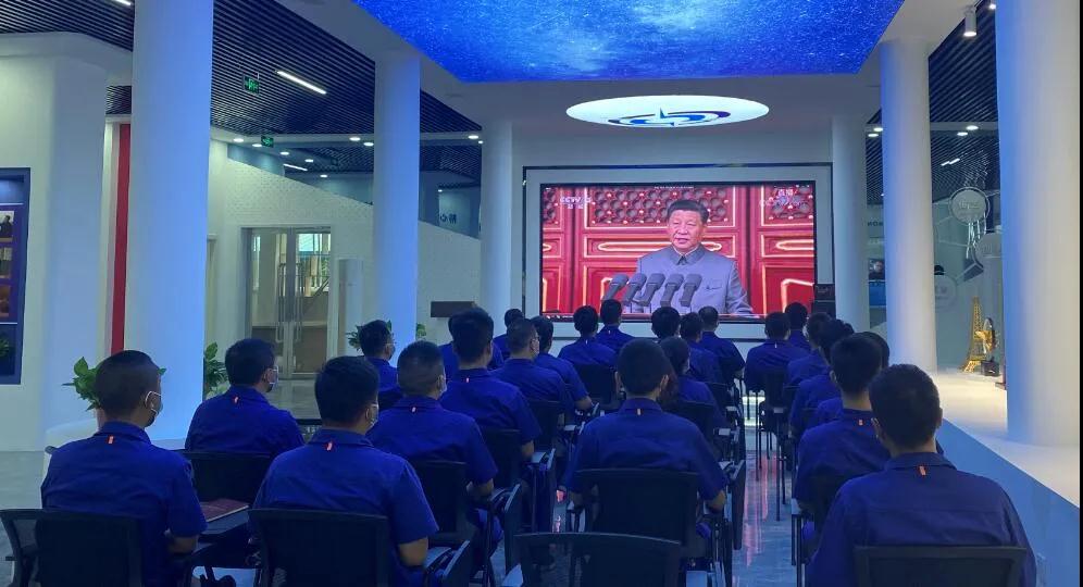 集團(tuán)公司總經(jīng)理、黨組副書記劉大山,黨組副書記周艦,黨組成員、總會(huì)計(jì)師張華,紀(jì)檢監(jiān)察組組長(zhǎng)、黨組成員陳學(xué)釧,黨組成員、副總經(jīng)理鄒文超,黨組成員、副總經(jīng)理植玉林帶領(lǐng)總部全體職工觀看慶祝大會(huì),各單位組織機(jī)關(guān)干部、科研人員、車間工人等通過集中收看、電視、電腦、手機(jī)網(wǎng)絡(luò)等方式觀看慶祝大會(huì)。
