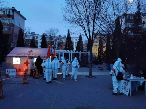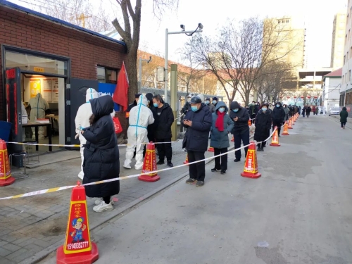 當(dāng)前,內(nèi)蒙古自治區(qū)疫情防控形勢(shì)依然嚴(yán)峻,包頭市中風(fēng)險(xiǎn)地區(qū)已達(dá)7個(gè)。面對(duì)疫情,中國兵器工業(yè)集團(tuán)有限公司駐包頭單位積極行動(dòng),支援當(dāng)?shù)匾咔榉揽?,共筑安全防線。 凌晨集結(jié),投身核酸檢測(cè)工作 來自一機(jī)集團(tuán)、北重集團(tuán)、材料院52所包頭事業(yè)部的共計(jì)500余名志愿者密切配合包頭市防疫部門、街道社區(qū)進(jìn)行全員核酸檢測(cè),同時(shí)做好信息登記、維護(hù)秩序、宣傳政策等工作,確保核酸檢測(cè)全覆蓋。2月20日凌晨,在零下20度的寒風(fēng)中,志愿者全部在支援地集結(jié)到位,做好核酸檢測(cè)前的相關(guān)準(zhǔn)備。 一機(jī)集團(tuán)黨員突擊隊(duì) 志愿者們搭建臨時(shí)帳篷,用圍擋封控家屬區(qū),配合醫(yī)護(hù)人員組織居民排隊(duì),有序進(jìn)行核酸檢測(cè)。檢測(cè)工作開始后,志愿者們用溫暖的話語安撫居民們的情緒,引導(dǎo)居民有序入場(chǎng),檢測(cè)居民體溫,登記核對(duì)信息,轉(zhuǎn)運(yùn)檢測(cè)樣本。為了盡可能提高檢測(cè)工作效率,志愿者在各條核酸檢測(cè)通道指導(dǎo)群眾掃碼登記,一對(duì)一幫助老人、兒童等不便使用智能手機(jī)的群眾解決困難,使其能順利進(jìn)行核酸檢測(cè)。 逐戶上門,確保應(yīng)檢盡檢 為確保所支援地區(qū)完成全員核酸檢測(cè)工作,志愿者自愿組隊(duì),挨家挨戶上門通知,進(jìn)行人員核對(duì),對(duì)于處在隔離期的居民以及行動(dòng)不便的老人、兒童采取了入戶核酸檢測(cè)。