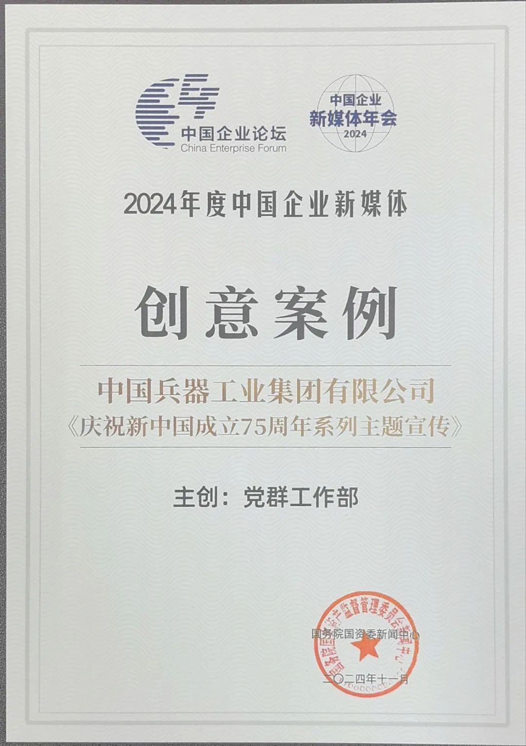 中國企業(yè)新媒體年會現場發(fā)布了“2024年度中國企業(yè)新媒體創(chuàng)新獎、創(chuàng)意獎、創(chuàng)作獎”,其中,集團公司《慶祝新中國成立75周年系列主題宣傳》榮獲2024年度中國企業(yè)新媒體創(chuàng)意案例。