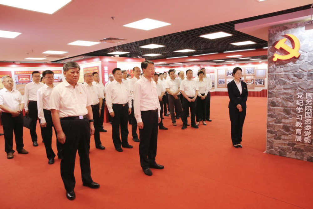 黨組同志認(rèn)真聆聽講解,集體參觀了“政治鑄魂——習(xí)近平總書記重要論述”“紀(jì)法樹威——黨規(guī)黨紀(jì)相關(guān)要求”“傳承增信——黨的優(yōu)良傳統(tǒng)”“嚴(yán)管促行——國務(wù)院國資委黨委紀(jì)律建設(shè)成效”“警示立戒——反面典型案例”“實(shí)干建功——工作展望”6個(gè)篇章,通過觀看圖文、視頻等形式多樣的展品展示,進(jìn)一步學(xué)習(xí)領(lǐng)會(huì)習(xí)近平總書記關(guān)于國資央企的重要指示批示精神和黨的紀(jì)律建設(shè)的重要論述,學(xué)習(xí)把握《中國共產(chǎn)黨紀(jì)律處分條例》新增、修訂內(nèi)容,全面了解國務(wù)院國資委黨委強(qiáng)化政治引領(lǐng)、加強(qiáng)政治監(jiān)督、深化紀(jì)律建設(shè)、抓實(shí)巡視工作等方面的做法舉措,集中觀看近年來國資央企發(fā)生的具有代表性的違規(guī)違紀(jì)案例,深刻領(lǐng)悟以習(xí)近平同志為核心的黨中央堅(jiān)持黨要管黨、全面從嚴(yán)治黨取得的歷史性成就,全面感受國務(wù)院國資委黨委全面從嚴(yán)治黨取得的重要成果。